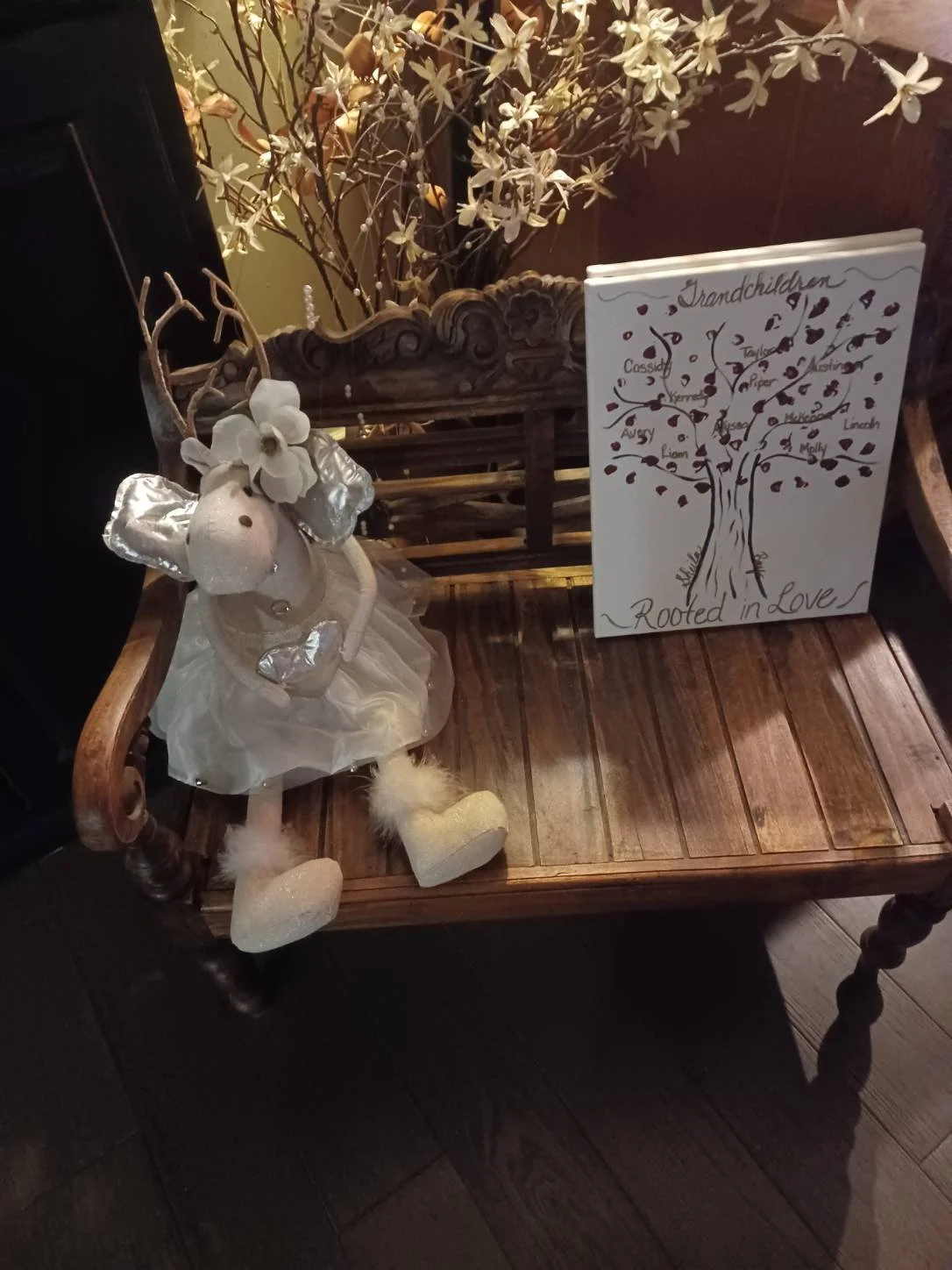 Surrounded by the things I love. My children's bench. My tiny lamp. My books on display and my ducks on water through sunlight from my granddaughter. She inspires me to be better.